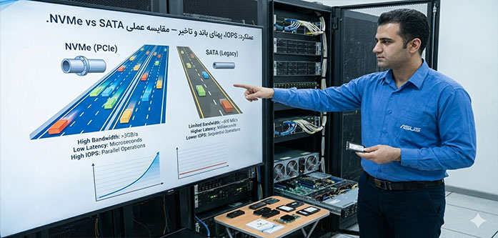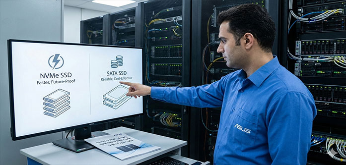 چرا راهنمای انتخاب درست هارد NVMe یا SATA SSD برای سرور ایسوس: کدام یک سریعتر و مقرون به صرفهتر است؟ اهمیت دارد